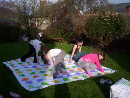 Good game break the ice. A referee throws a dice and whichever colour comes up each player has to put part of their body on a square of that colour. The dice is thrown again and each player has to touch the second colour as well without moving the first contact. After 4 goes most players are in knots, the game continues but as any player fails to maintain contact they drop out, the last player remaining wins and becomes referee for the next game.